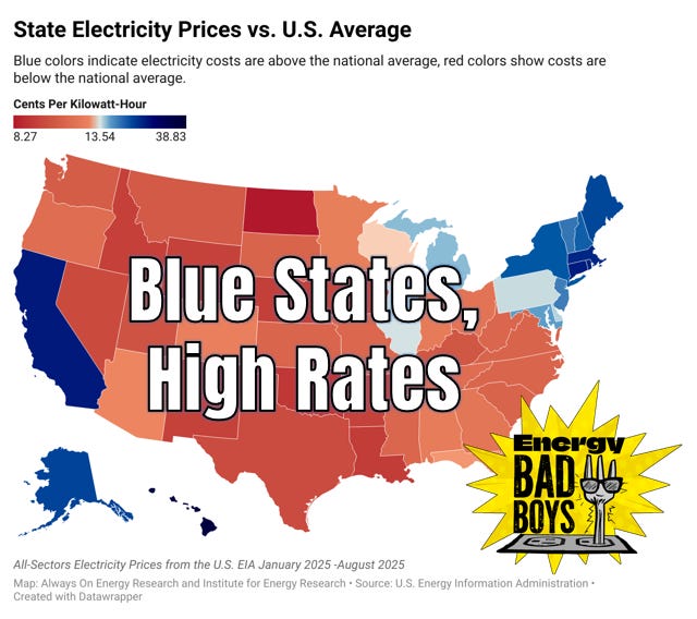 The data is clear: bluer states tend to have much higher electricity prices than red states.