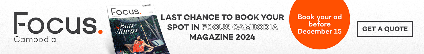 Welcome to December. The last month of the year and the final chance to book your ad in Focus Cambodia 2024.