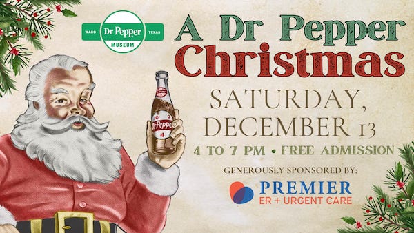 Christmas arrives at the Dr Pepper Museum on Saturday like a carbonated holiday overdose—free admission, Santa photos, raffle baskets, and the chance to mix your own sugary Frankenstein in the Holiday Make-A-Soda lab.