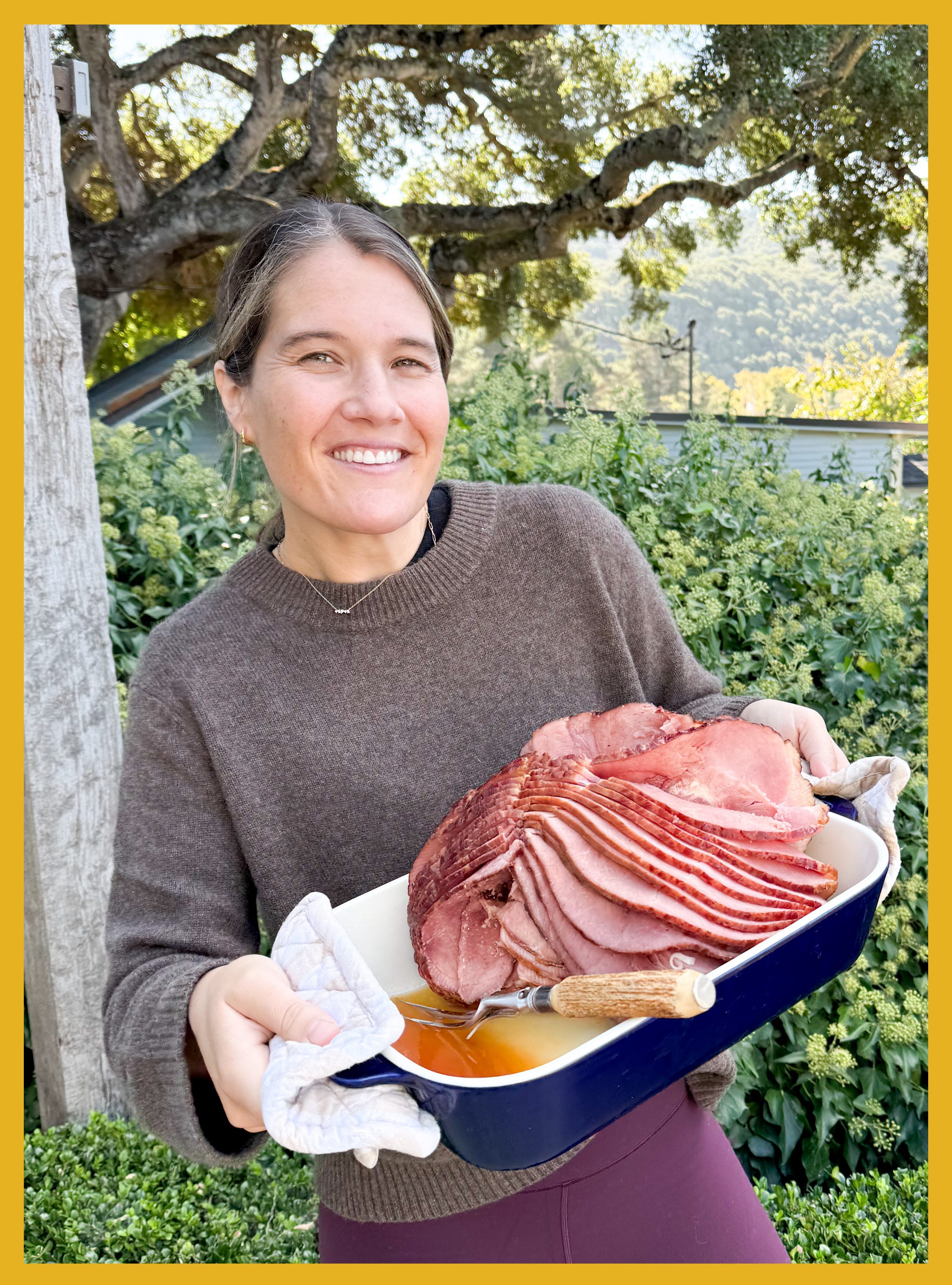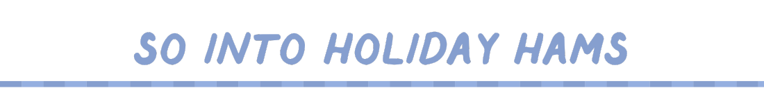 A big ole ham is my absolute favorite way to take the stress out of holiday entertaining — I grew up on Smithfield Spiral Cut Ham and I love serving them as the main course for get togethers all fall and winter. Heat up the ham, add the included glaze, and serve however you’d like: as a main meat entrée with sides, or my favorite: with rolls for making little ham sandwiches. Put out some rolls, mustards, and some white Cheddar or havarti, and you’re done! Filling and festive. Ham is also a great sub option for Thanksgiving if turkey isn’t your thing — it’s much faster to prep and cook (and is simply more delicious IMO!). The best part about serving ham is all the leftovers: I suggest ham and cheese grilled cheeses with tomato soup for lunch or dinner the next day. Thank you to Smithfield for sponsoring today’s So Into That.
