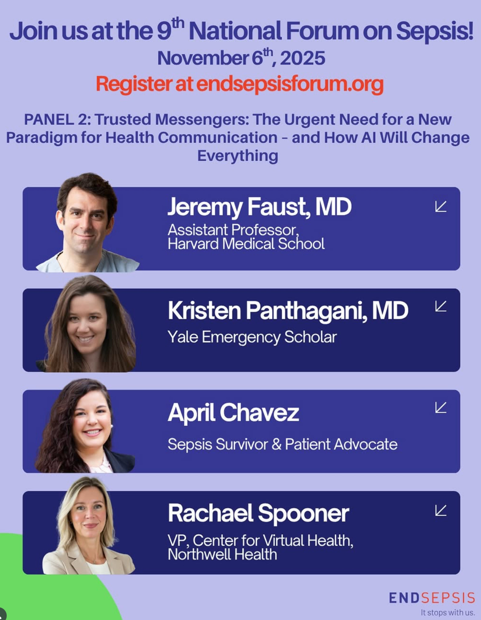 Today, at 11 a.m. ET, I’ll be a panelist at the 9th National Forum on Sepsis, organized by End Sepsis. I’m thrilled to be joined by my colleague Dr. Kristen Panthagani (who many of you will recognize from her Inside Medicine contributions), and two other advocates, one of whom is a sepsis survivor herself.