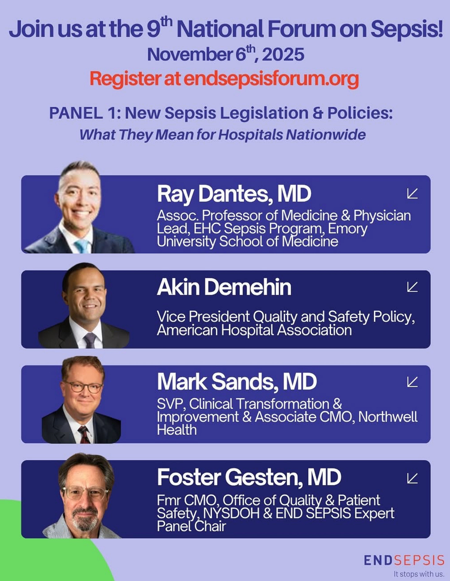 The 2025 END SEPSIS 9th National Forum on Sepsis convenes leading voices from government, medicine, innovation and patient advocacy for a dynamic dialogue on how policy, practice and technology are converging to change the future of sepsis care.