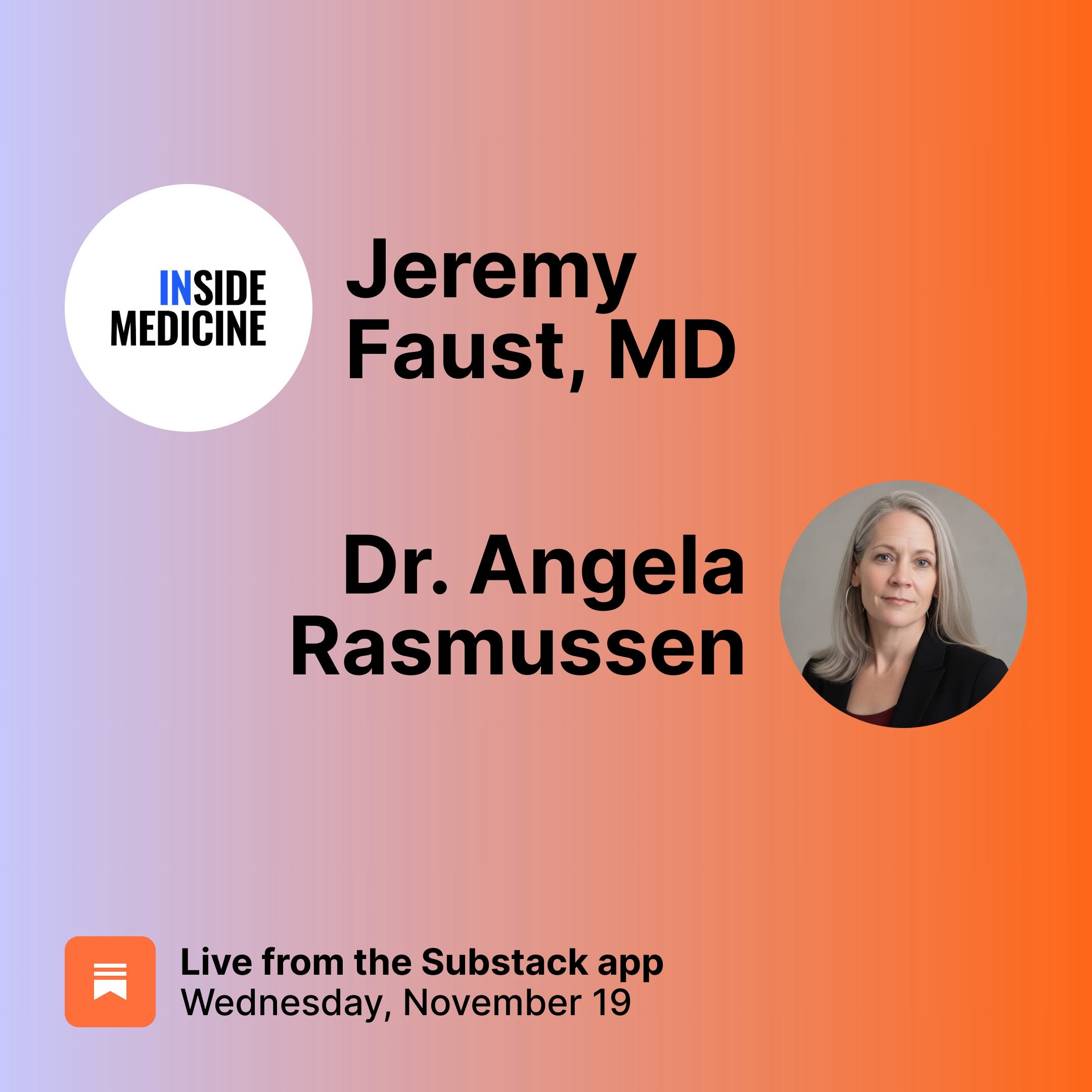 To join us live, click this link (you can watch on any device, including the Substack app). To add it to your Google calendar, click here if that is easier for you. All Inside Medicine subscribers will receive an email with the link the moment we go live. Note: this session will also be posted on Inside Medicine afterward, and will be entirely free.