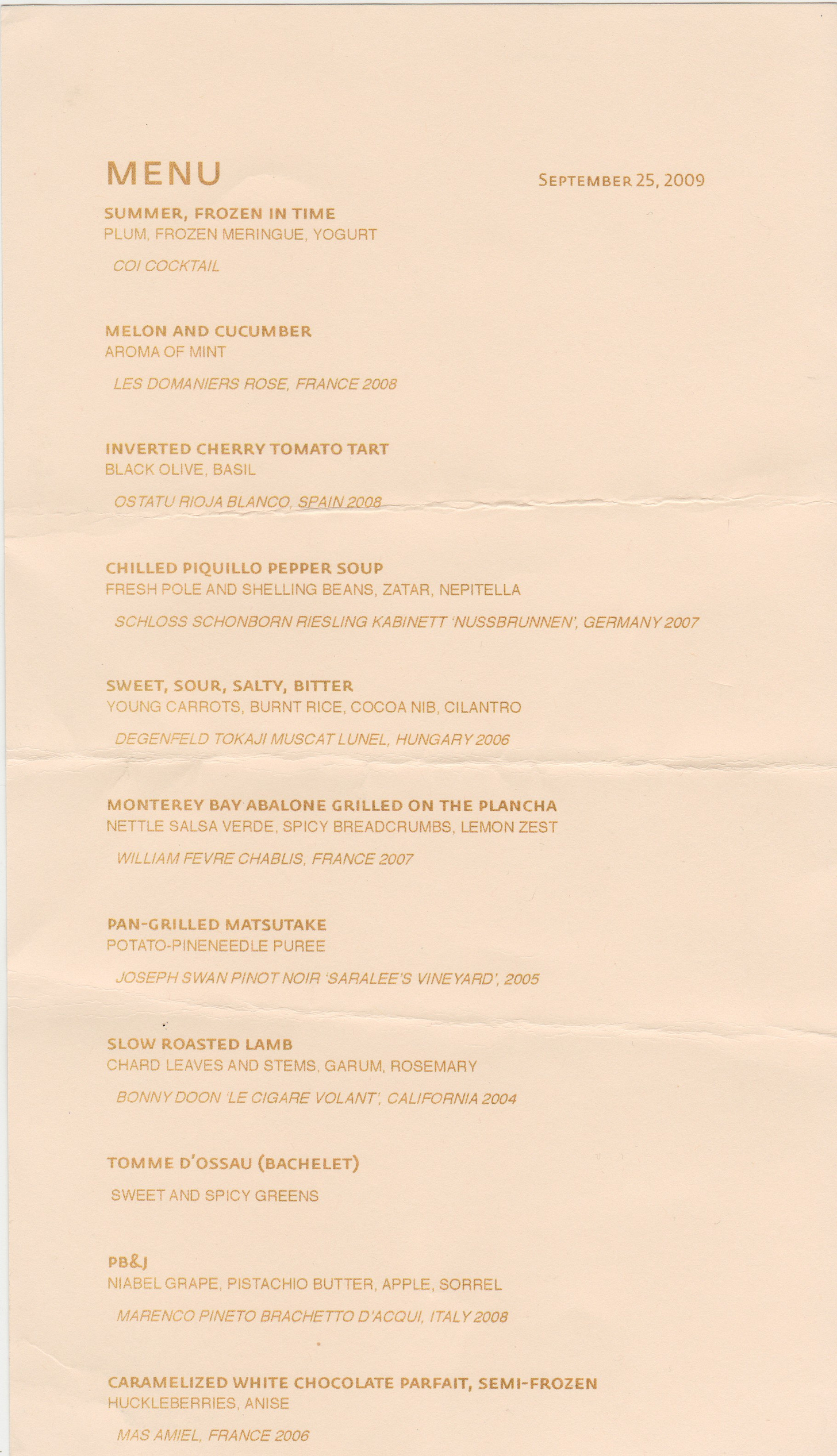 This menu is from Daniel Patterson’s San Francisco restaurant, Coi. I love the idea of summer being frozen in time - and this strikes me as a menu I’d be extremely happy to eat right now.