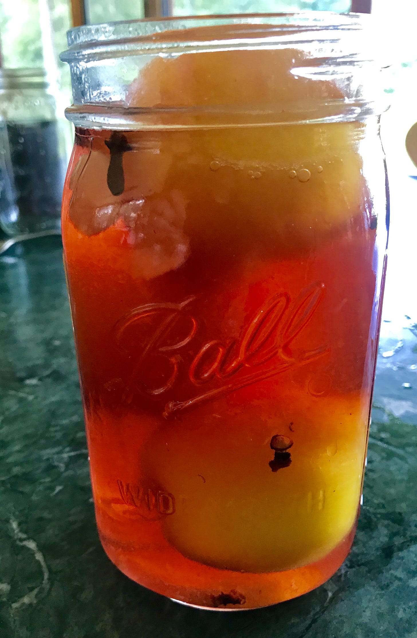 Let’s start with pickled peaches, a once-standard supermarket item that has pretty much disappeared from the shelves.