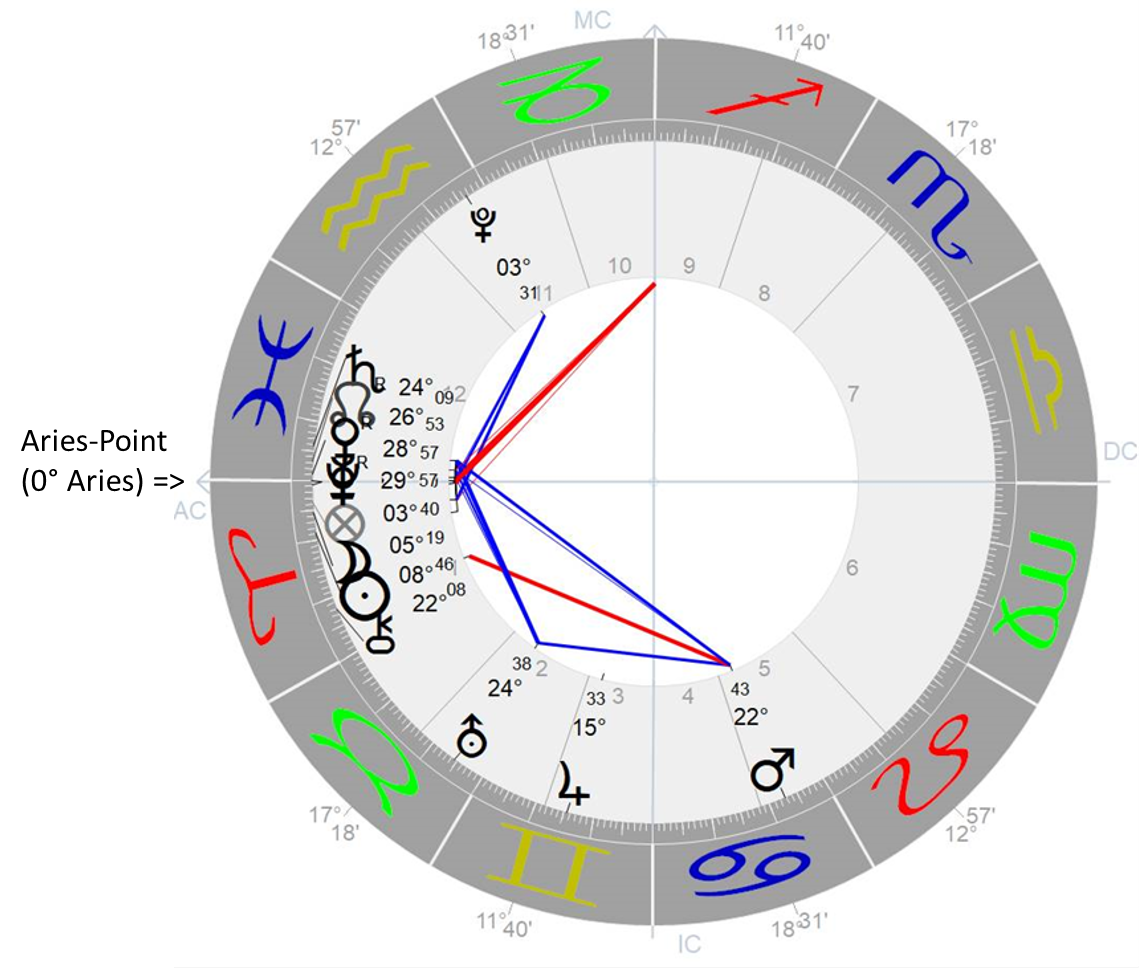 When looking at the planetary placements in the next four weeks, one cannot help but get the impression that in March the cosmos is trying to figure out how many planets can be crammed into one zodiac degree. And the degree I’m talking about is a special one: it’s the Aries Point, the very first degree of Aries and the very first degree of the zodiac. It has a special significance because it’s the point of the vernal equinox, symbolizing the beginning of a new development cycle. Every year when the Sun reaches this point on April 21st , the day is as long as the night, marking the beginning of spring, the reawakening of nature and our vital forces. So far, nothing special. But this March half of the planets will be either approaching, meeting on or retrograding back to this point. And the ‘planetary squeeze’ will tighten the further we get to the end of March.