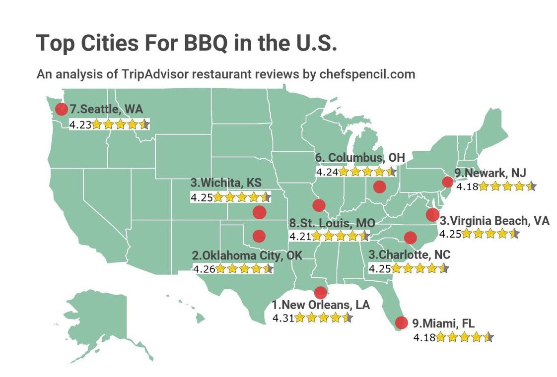 An Australian publication attempted to make a guide to barbecue in America. It didn’t go well. TripAdvisor quickly screamed and shouted and hollered repeatedly that they were not affiliated with “chefspencil.”