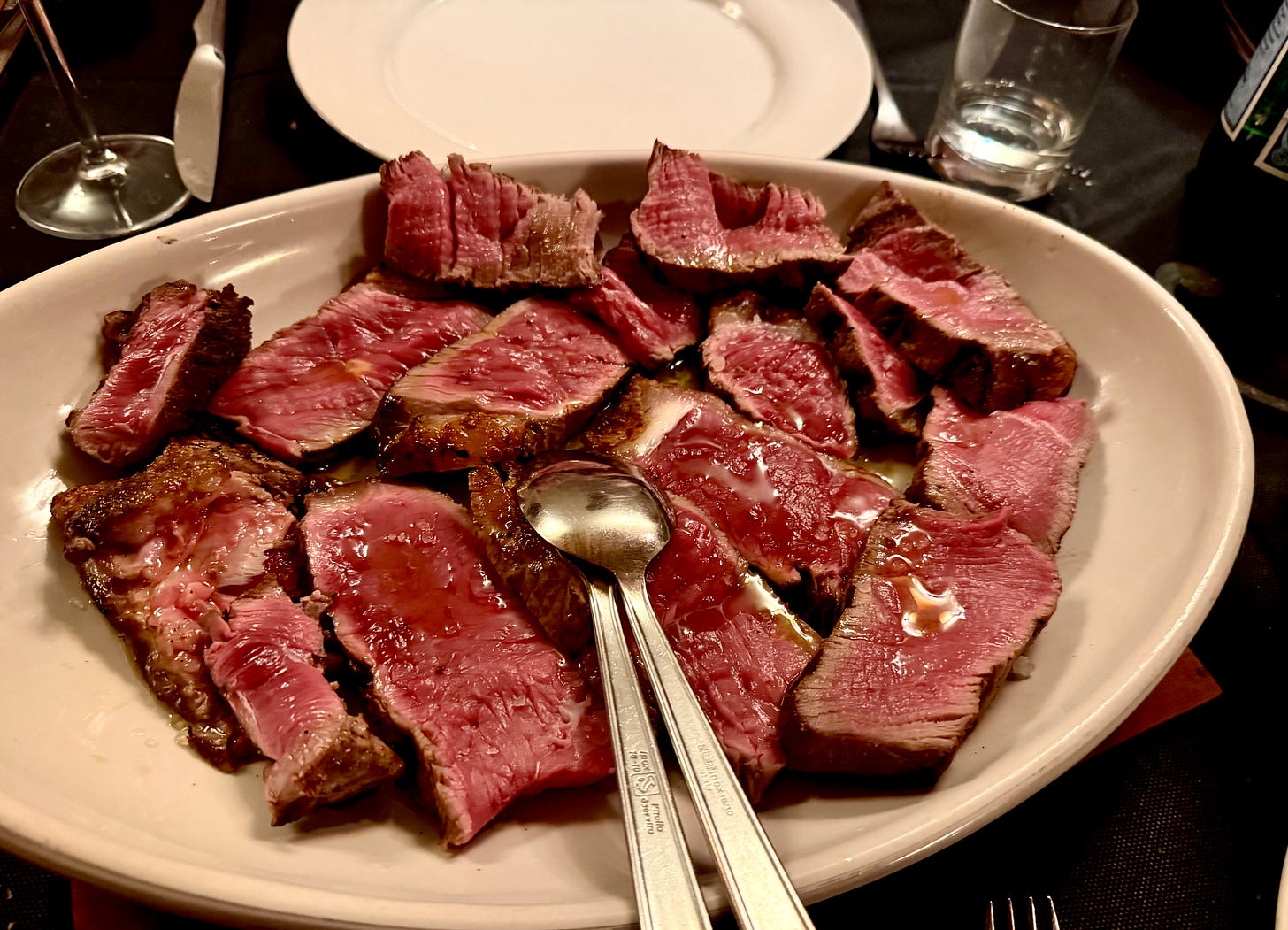 … went on to a huge platter of Chianina beef grilled over a wood fire.