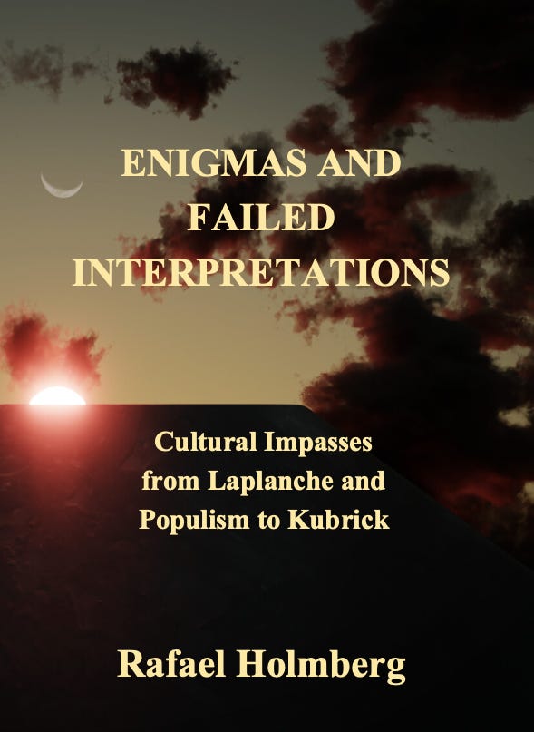 Whilst waiting for editors, publishers, colleagues and other uncanny figures of the philosophy industry to get back to me, I decided to put together a small booklet: Enigmas and Failed Interpretations: Cultural Impasses from Laplanche and Populism to Kubrick.