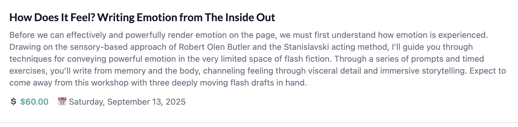 UPCOMING WORKSHOPS