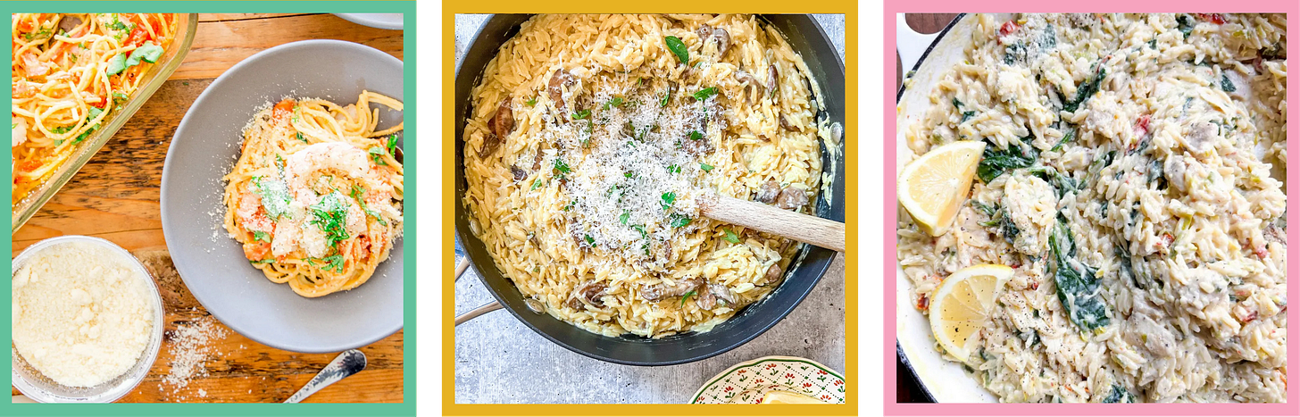 PS, for anyone that was hoping for an easy-but-fancy menu with seafood (the third option I gave in the IG poll!), see the “must have meat” note below the recipe for how to add shrimp to this pasta. One other seafood idea: You could swap the beef tenderloin in the OG menu with pan-seared scallops.