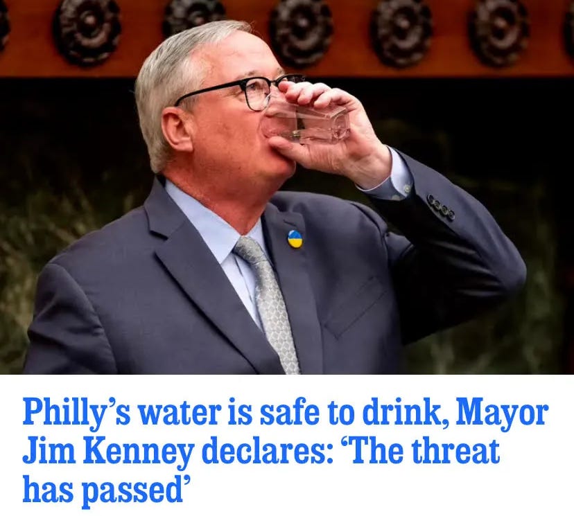 On Sunday, everyone in Philadelphia got a push notification sent to their phone at like 1:15 that said, “hey everybody it’s the city of philadelphia, just a heads up there was a chemical spill and it got into the water supply so everybody might wanna start drinking bottled water starting in 45 minutes hahahaha your so cute pls don’t be mad at us.”