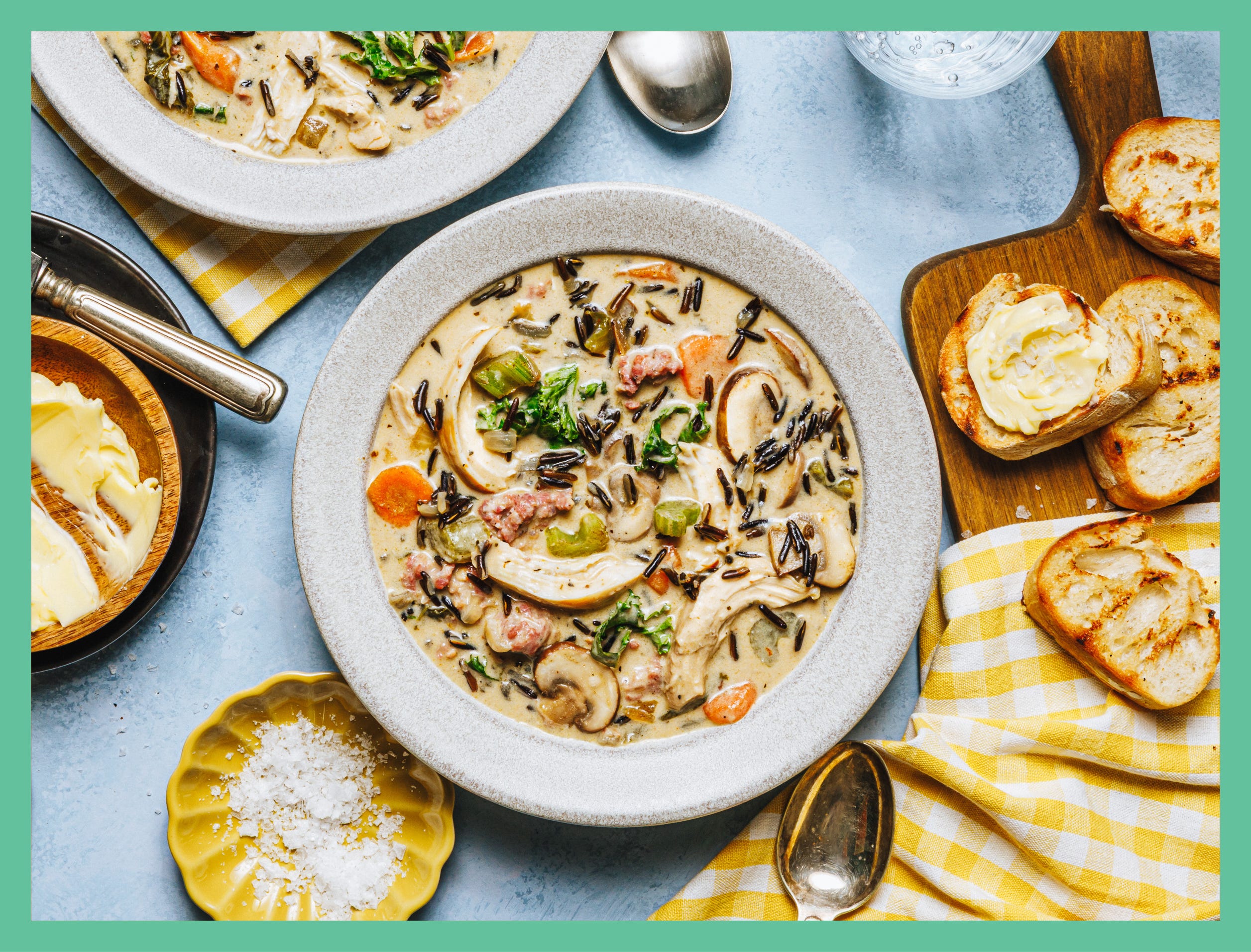 creamy cajun turkey, sausage, and wild rice soup