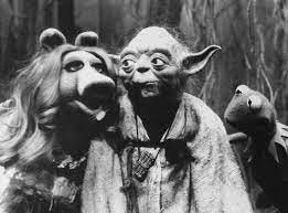 Miss Piggy and Kermit paying Yoda a visit, during the filming of The Empire Strikes Back: