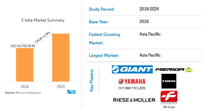 The global e-bike market is growing at a substantial rate. In 2018 it was valued at $14.7 billion and is expected to grow ~6% annually over the next few years.