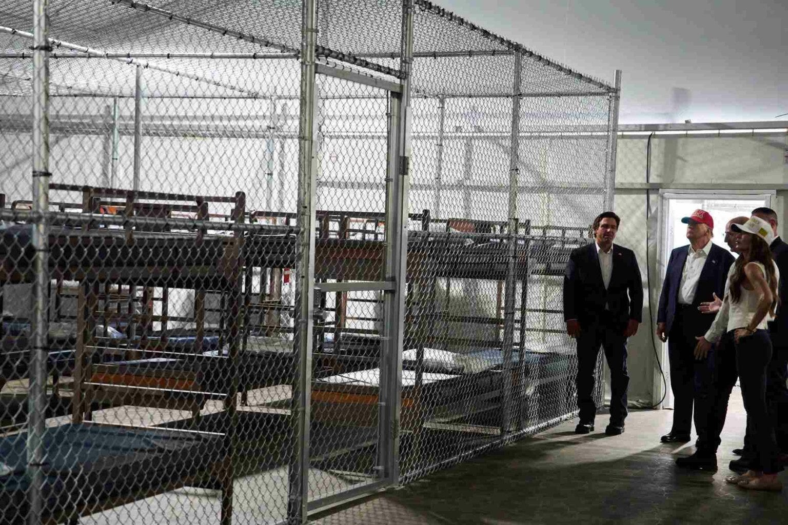 Donald Trump tours Alligator Alcatraz in Ochopee, Florida. (Evan Vucci/AP Photo)