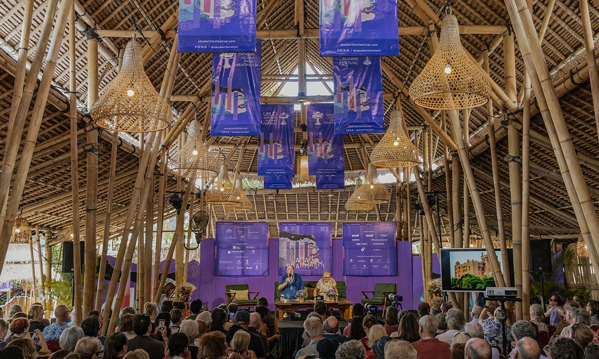 That was certainly the case at the opening night gala of the Ubud Writers & Readers Festival last Wednesday, when festival director Janet DeNeefe told those gathered at the Puri Saren Agung that Ubud is “magical” and that we should “ignite our own magic and share it with each other [because] that’s part of cultures, stories, literature, etcetera.” My hackles went up—at least after I finished laughing at that decidedly unmagical “etcetera”—as they did the next morning when I saw someone walking around with a Byron Writers Festival tote. The sacredness we ascribe to storytelling, which has given rise to the trauma plot, the First-Person Industrial Complex, Ocean Vuong, and other horrors, often smacks too much of the spiritual retreat for me, too much of the scented candle aisle. I was on my guard from the get-go in Ubud against what I considered a certain Ubud type.
