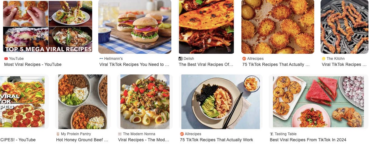 I feel for the recipe developers and food personalities who have to come up with new and viral-sounding recipes almost daily. It’s draining on them, and honestly, it’s draining for us. Dubai Chocolate Overnight Oats or Protein Packed Sheet Pan Freezer Meals are trying to be helpful, but if you’re like me, they can sometimes make me feel worse. These videos are aspirational, but perhaps not actually helpful.