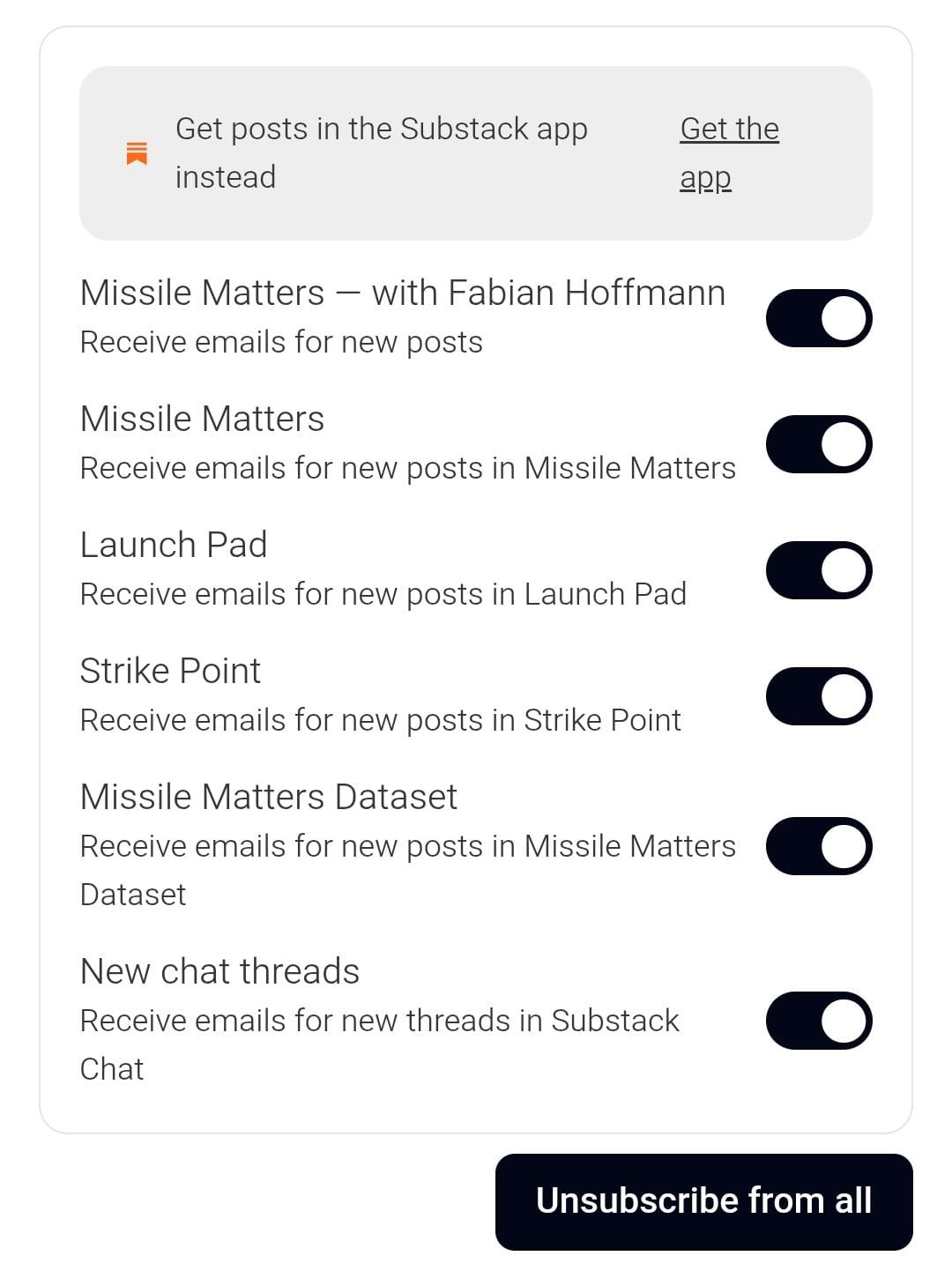 Since launching Missile Matters one year ago, the newsletter has grown to nearly 10,000 followers and consistently attracts between 30,000 and 40,000 monthly views — far more interest in these topics than I had initially anticipated.