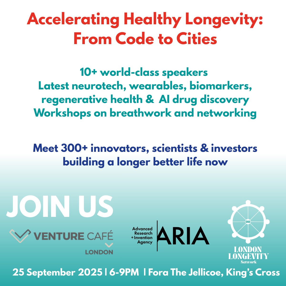 To celebrate, we have teamed up with Venture Café London and ARIA for an event at Fora The Jellicoe, King’s Cross, 6-9 PM.