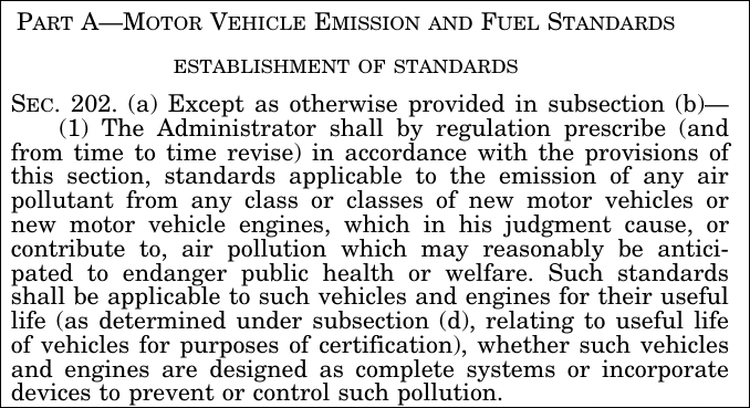 The entire debate over the Endangerment Finding is based on interpretations of the meaning of a 112-word paragraph in the Clean Air Act., shown in full below.