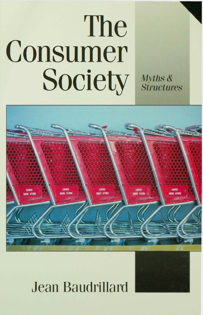 And then, this morning, for seminar on Monday I find myself reading Jean Baudrillard’s extraordinary Consumer Society, published in 1970 amidst the Vietnam war.