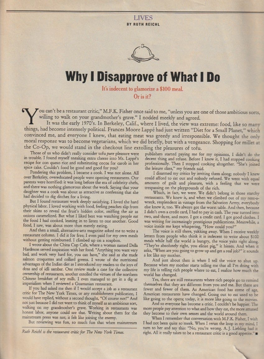 The Morality of Restaurant Criticism
