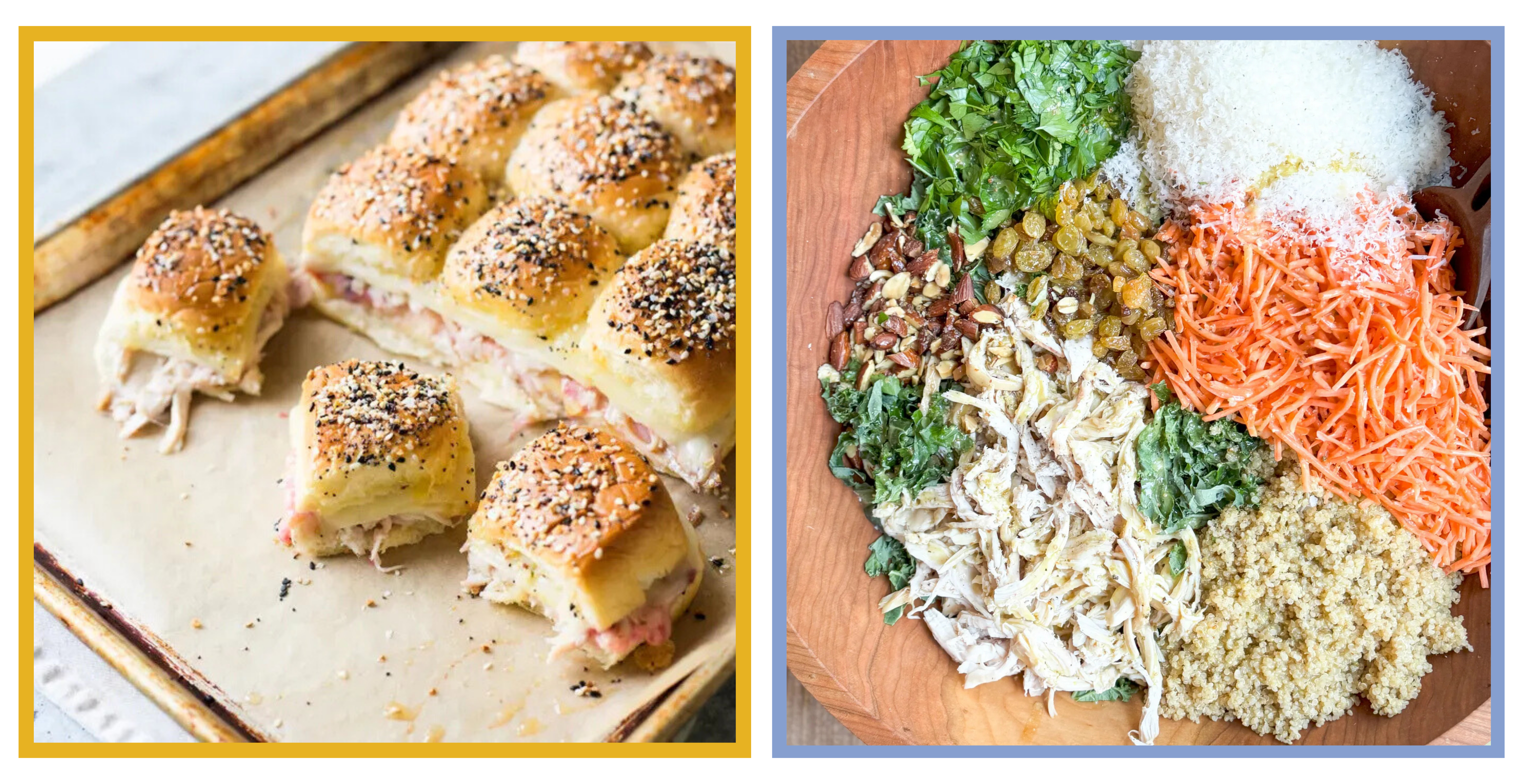 Thanksgiving leftover sliders. Aka cheesy cranberry turkey melt sliders! In this recipe we deploy my favorite move for feeding a crowd: slice a whole sleeve of King’s Hawaiian rolls in half horizontally, fill it with delicious ingredients, and bake until it’s golden, gooey, and delicious. This makes an absolutely elite day-after-Thanksgiving lunch.