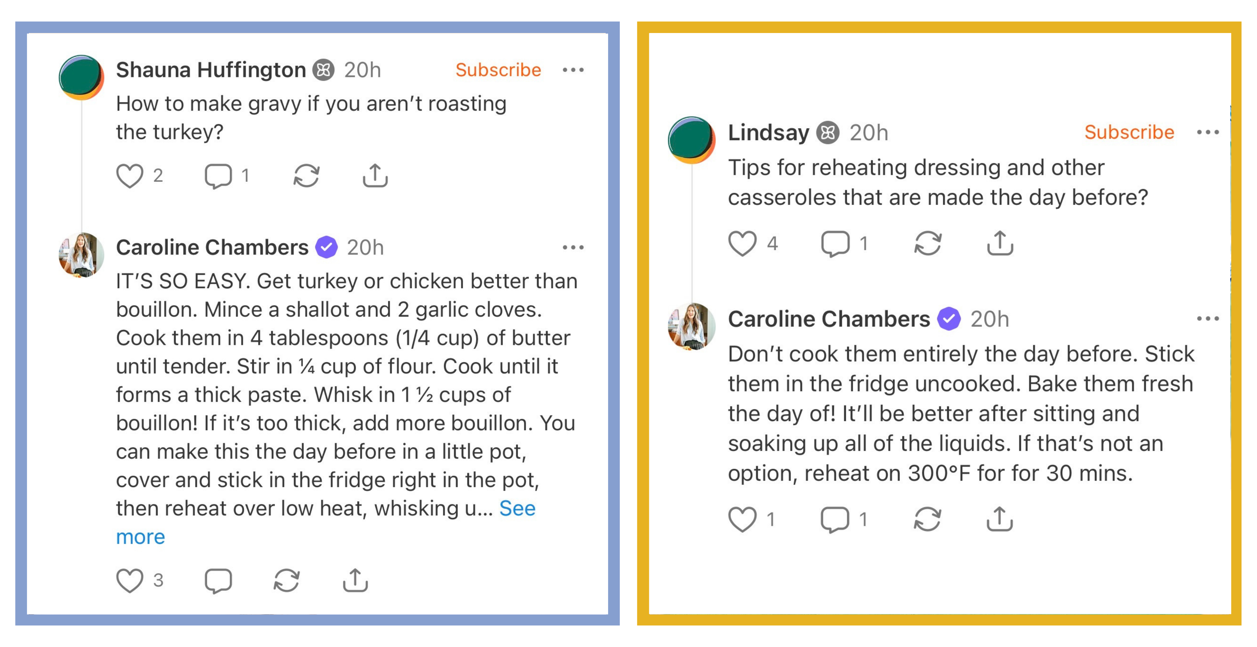 Happy Thanksgiving Eve! On Monday we spent a fast and furious hour troubleshooting many of your Turkey Day conundrums. You all had so many good questions! I highly recommend that you read through the thread — whether you’re hosting tomorrow or not, lots of good entertaining ground was covered.
