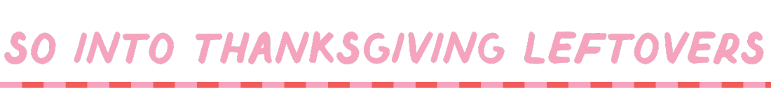 Creamy leftover veggie soup. This is a good recipe to have in your back pocket any time of year. Blend any leftover roasted veggies you’ve got with stock (chicken, vegetable, whatever!) and a little Parm until it reaches a nice creamy consistency. Add kosher salt and freshly cracked black pepper to taste (which means you add a little at a time until it tastes perfect to you). Serve with grilled cheese OR topped with homemade croutons made from leftover stuffing/dressing!