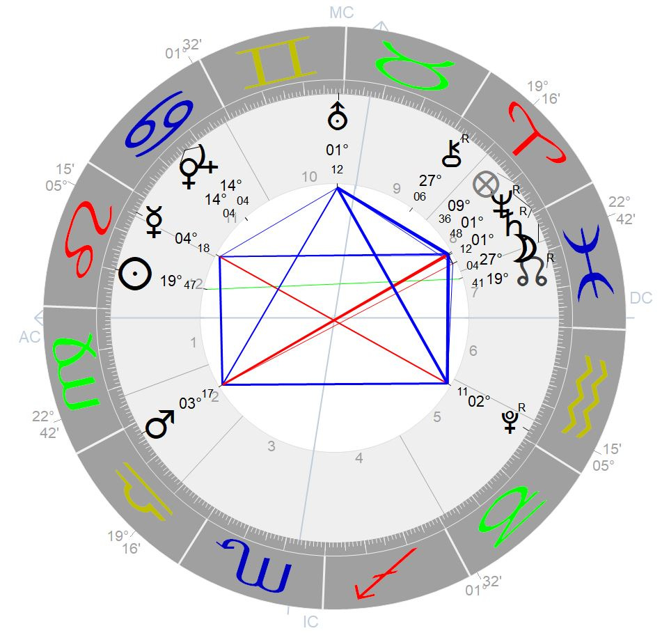 Since this kite-configuration is exclusively formed by planets in the elements of fire and air and involves fickle Uranus in Gemini, the seeming stability of this constellation might dissolve quickly. In simple words: it looks like fast and large-scale efforts to impose peace or create a balance of some kind. As ingenious as certain moves might be, there is the danger that current tensions and issues might find a temporary containment but no long-lasting solution. This does not only apply to the political arena (and to the US in particular as the chart and the government of this country is immediately affected by this constellation), but you might find similar situations in your own life, especially if you have significant planetary placements or sensitive points at the beginning of Aries, Leo, Libra or Aquarius.
