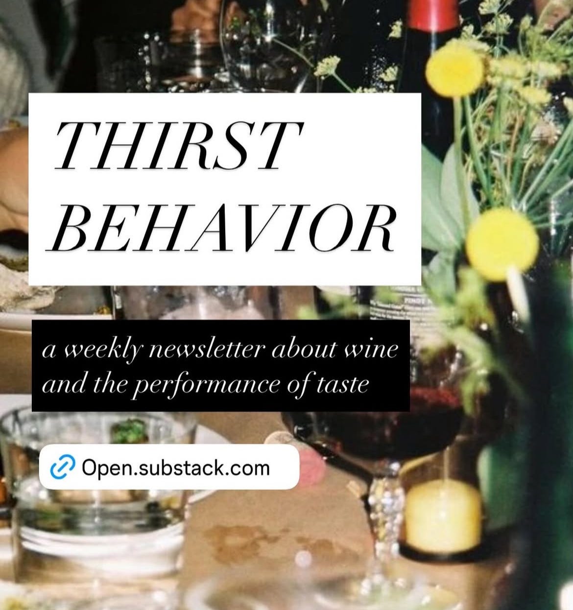 That’s exactly what happened when he launched his newsletter, Thirst Behavior. He describes it as “a weekly column about wine and the performance of taste… the social agenda for people who care not only about what’s in their glass but about how taste itself gets made.”