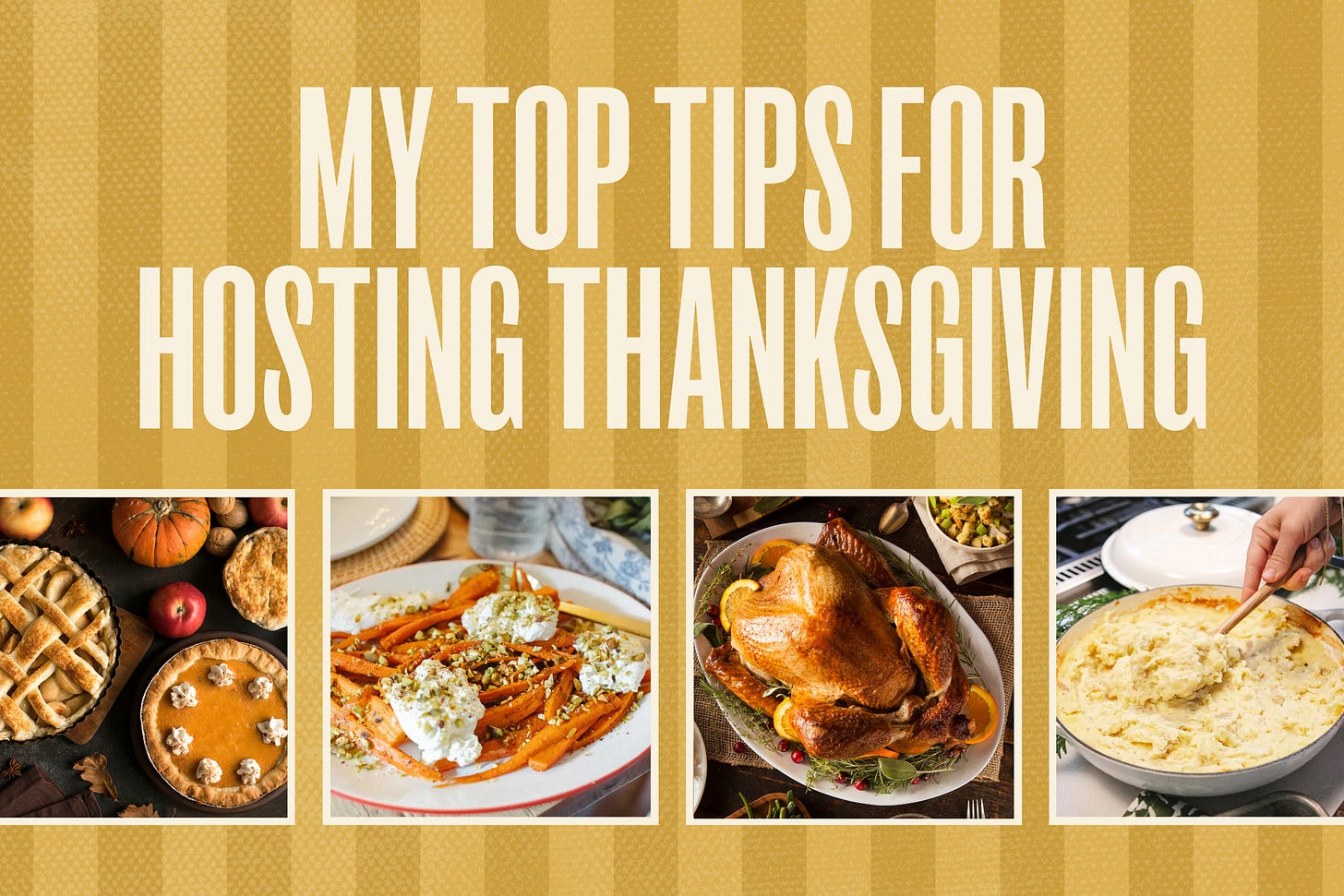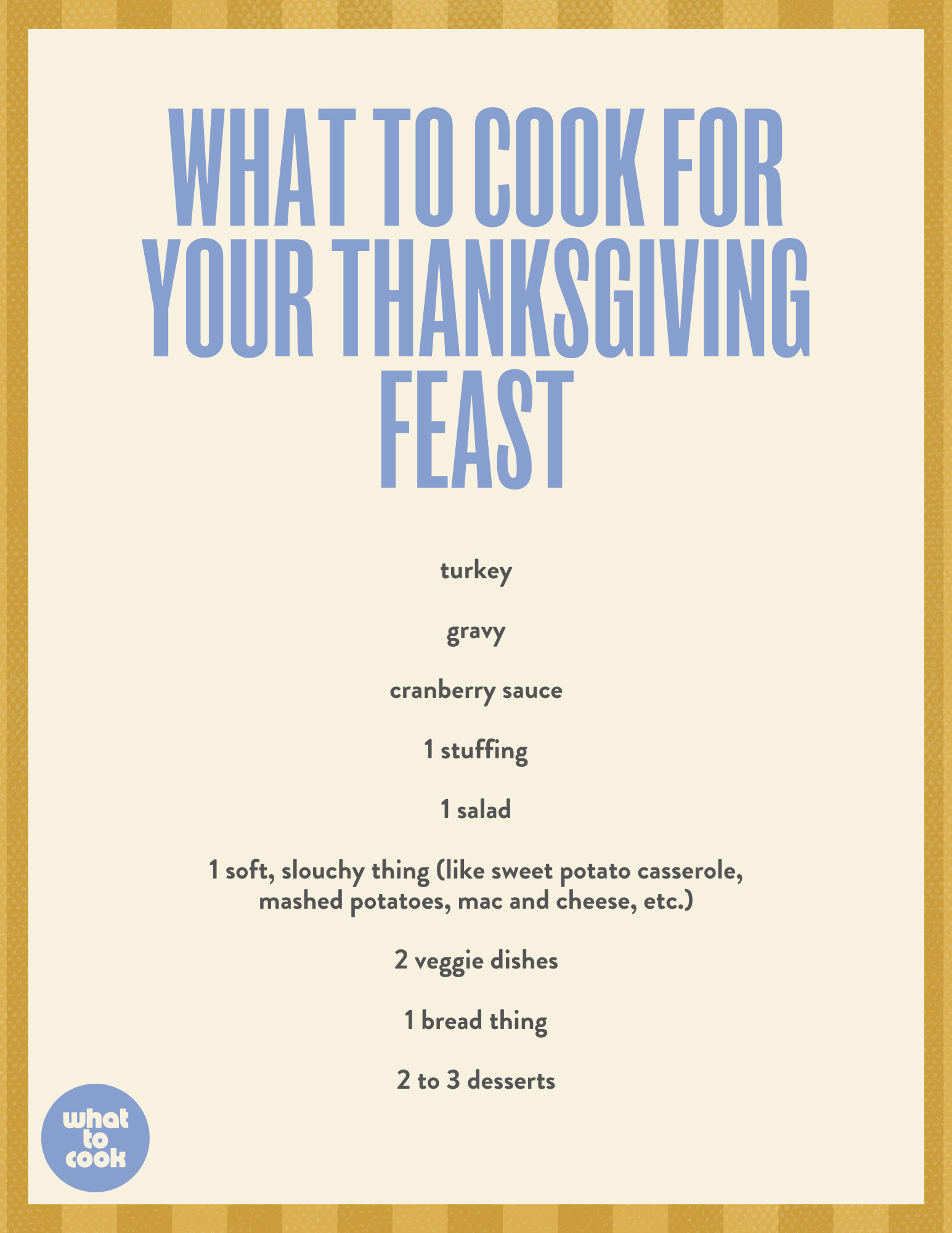 We’re 17 days away from the biggest cooking day of the year, y’all! On Saturday, we shared a recipe for sheet-pan turkey meatballs that would make a wonderful Thanksgiving meal, if you’re cooking for just your immediate family and don’t want to have a ton of leftovers. Today, we’re back with a roundup of my top tips for cooking and hosting a more classic Thanksgiving feast. Keep reading for a menu formula, a timeline for when to cook it all, tips for feeding picky eaters, my go-to Thanksgiving recipes, and more.